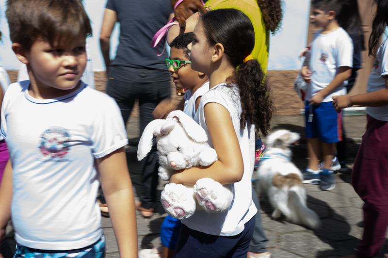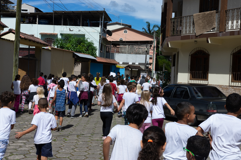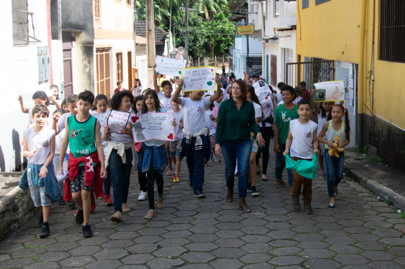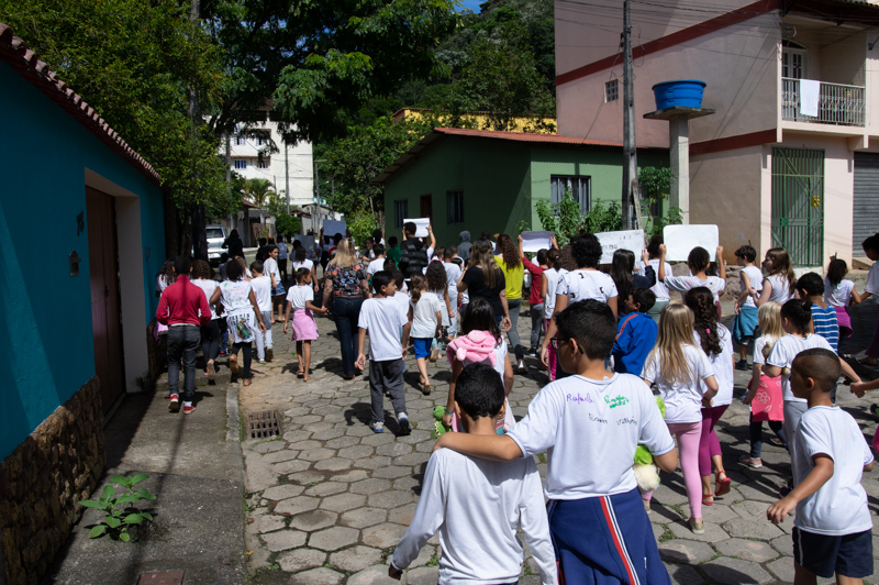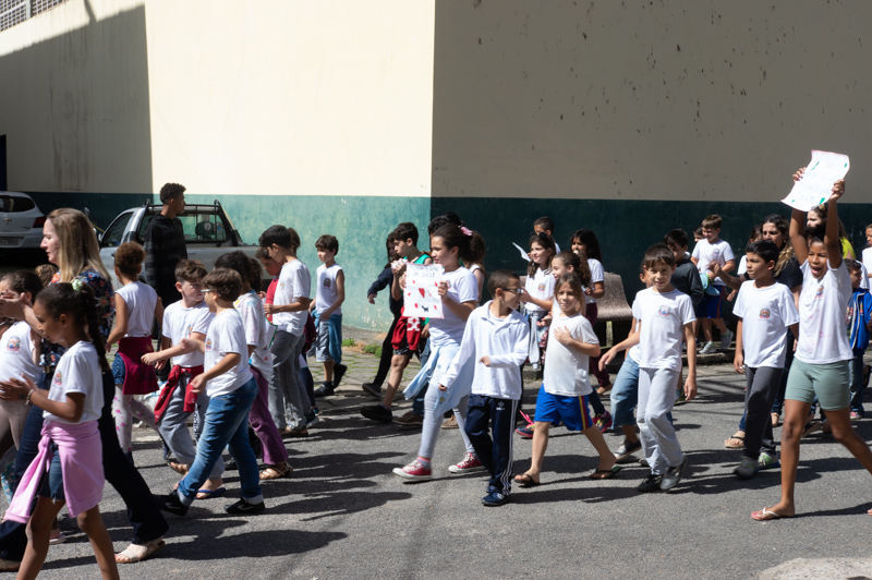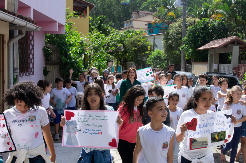 Logo após o recreio, os alunos da escola saíram em caminhada pelas ruas de Santa Isabel levando cartazes com mensagens de conscientização e animaizinhos de pelúcia. Também foram na caminhada as cachorrinhas Elsa e Frozen, o cãozinho Manteiguinha, da aluna Ana Carla, do 4º ano, o gatinho da aluna Ellen e os alunos das professoras Dayse, Stefany, Isabel e Érica, juntamente com as auxiliares Jéssica e Claudionora.